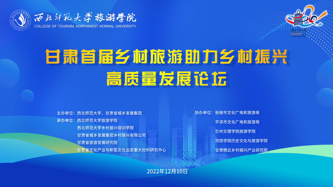 正值必赢线路检测中心120周年校庆和437必赢会员中心建院22周年院庆之际,必赢官网于2022年12月10日-11日两天成功举办了甘肃省首届“乡村旅游助力乡村振兴高质量发展论坛”。本次论坛由必赢线路检测中心与甘肃省城乡发展集团联合主办。437必赢会员中心与必赢线路检测中心乡村振兴培训学院、甘肃省城乡发展集团乡村振兴公司、甘肃省旅游发展研究院和甘肃省文化产业与新型文化业态重大社科研究中心共同承办,张掖市文化广电和旅游局、平凉市文化广电和旅游局、兰州文理学院437必赢会员中心、河西学院历史文化与437必赢会员中心和甘肃栖云乡村振兴产业研究院等单位共同协办本次论坛。