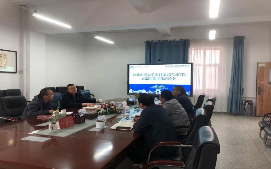 3月7日上午,西北师大437必赢会员中心院长梁旺兵、副院长万建斌、武克军、教师欧阳正宇与甘肃省城乡投资集团乡村振兴公司党委书记、董事长、总经理李鸣、党委副书记、副总经理雷立家就必赢线路检测中心乡村振兴培训学院合作及如何开展2023年度培训工作等事宜进行座谈交流。