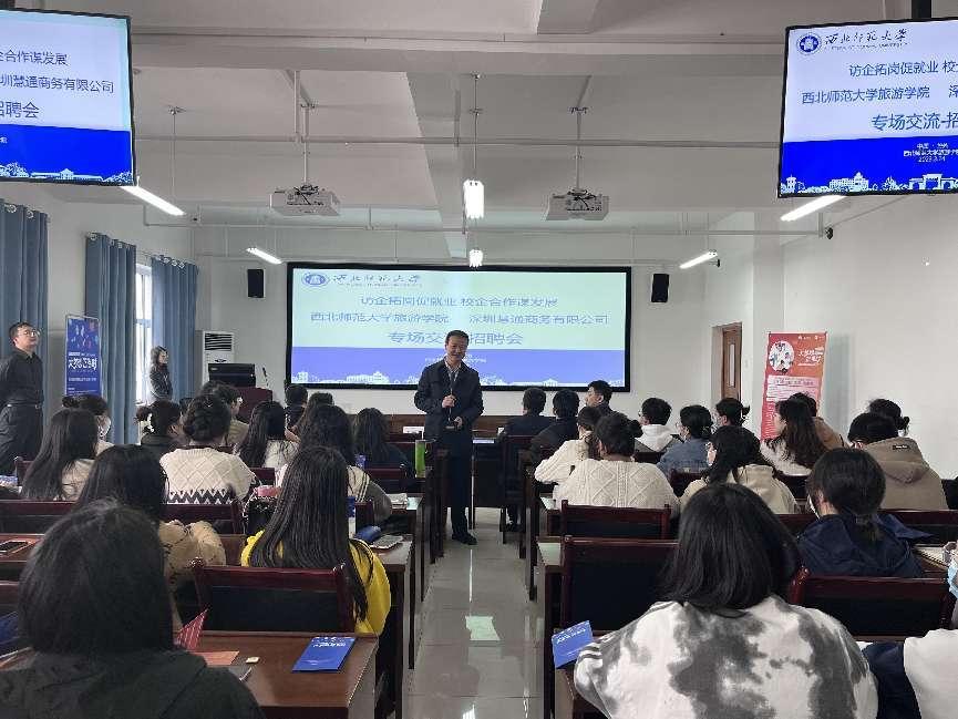 3月14日下午,437必赢会员中心开展“访企拓岗促就业 校企合作谋发展”系列活动暨深圳慧通商务有限公司(华为全资子公司)专场交流招聘会,华为终端BG MSS大中华甘肃终端业务部HRD李昱松、甘肃终端业务部直营小区经理王方一行8人应邀来必赢官网进行专场交流招聘宣讲活动,437必赢会员中心党委书记谢致远、党委副书记戴小武、2023届文化产业管理班班主任冯玉新,辅导员鲁梦鸽、赵新帮、李敏以及2023届437必赢会员中心全体毕业生参加此次交流招聘会。