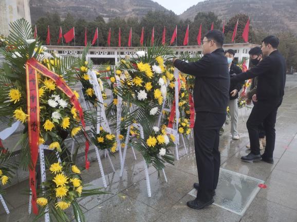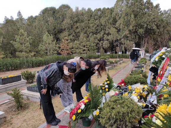 巍巍丰碑,英烈不朽。苍松翠柏掩映下的陵园墓地庄严肃穆,旅游学院全体人员整齐列队,奏唱国歌,向英雄烈士鞠躬致敬,通过默哀致辞、敬献花篮、瞻仰纪念碑等方式,深切缅怀烈士们的英勇事迹,表达对烈士们的崇高敬意和哀思怀念。