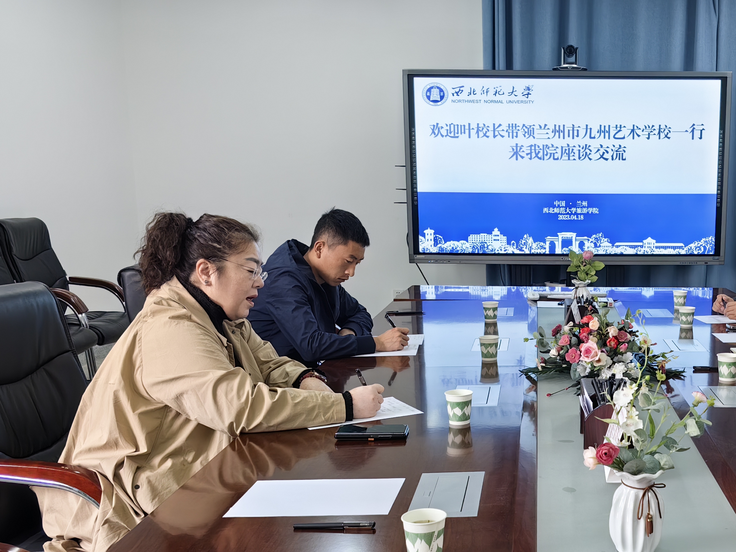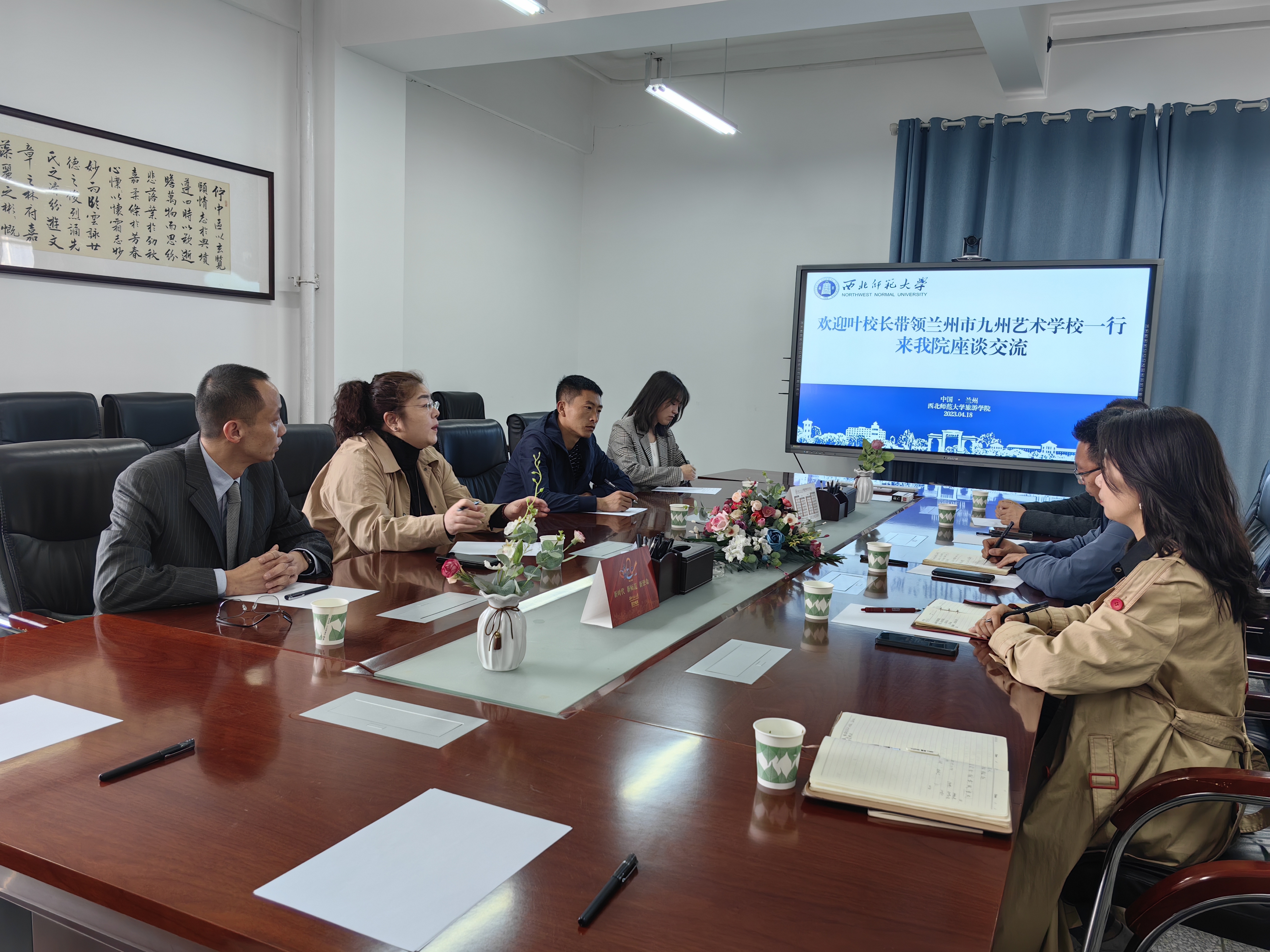为认真学习贯彻习近平总书记关于做好高校毕业生就业工作的重要指示精神,以服务经济社会发展为导向,始终把就业工作摆在突出位置,持续推进产教融合,着力建好合作平台,汇聚促就业工作合力,努力推动毕业生更加充分更高质量就业为营造以实习促就业,全面推进学生就业工作顺利开展,4月18日,兰州市九州艺术学校叶赫校长一行4人,与437必赢会员中心院长梁旺兵、副院长柴亚林、北京广慧金通教育集团陕甘宁青区域总经理苗雪、北京广慧金通教育集团驻必赢线路检测中心工作处主任席聪共同举行座谈。