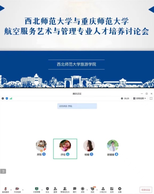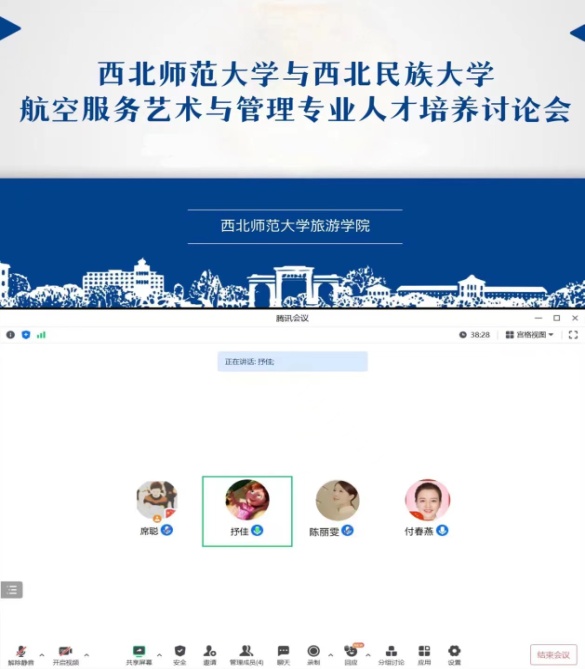 会中,西北民族大学航空服务艺术与管理系系主任付春燕老师对本学院的专业和人才培养方案进行介绍。她表示两校同设有航空服务艺术与管理专业,希望继续深化交流、携手共进、共谋发展,在学科建设、教学研究、人才培养、学生管理等方面加强沟通、深入学习,实现优势互补,共同书写西北地区航空服务专业发展新篇章,以交流和变革促进两校教育协同,为实现教育高质量发展打下坚实基础。