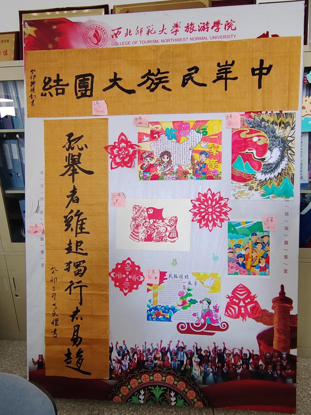 “民族风韵,源远流长”手工作品展活动。5月16日,437必赢会员中心积极动员2021级、2022级本科生参加“石榴花开,籽籽同心”民族团结进步宣传月手工作品展,各班同学积极踊跃参加,充分发挥自身特长,将民族团结以精美的绘画、隽逸的书法、巧妙的手工作品等方式进行呈现并于活动现场进行展览投票评选。该项活动共15幅作品参与评选,根据现场投票结果选出一等奖1名,二等奖2名,三等奖3名。