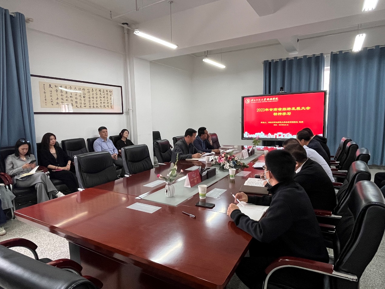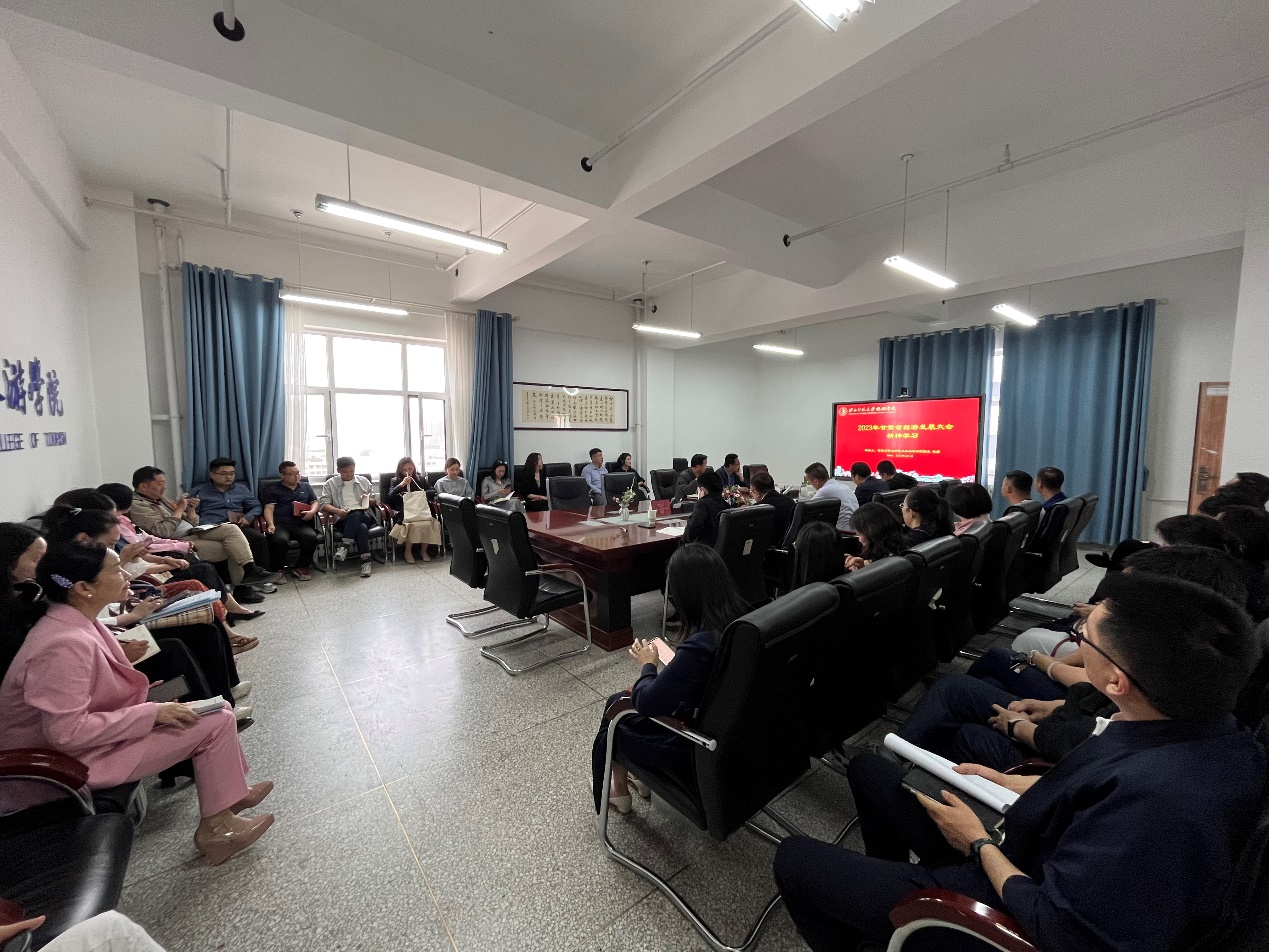 2023年6月1日,必赢官网召开全院教职工大会,梁旺兵院长主持2023年甘肃省旅游发展大会精神的主题学习,并传达了相关会议精神。据悉,甘肃省文化旅游发展大会于2023年5月26日在兰州召开。甘肃省委书记、省人大常委会主任胡昌升出席并讲话,省委副书记、省长任振鹤主持会议,省政协主席庄国泰出席。