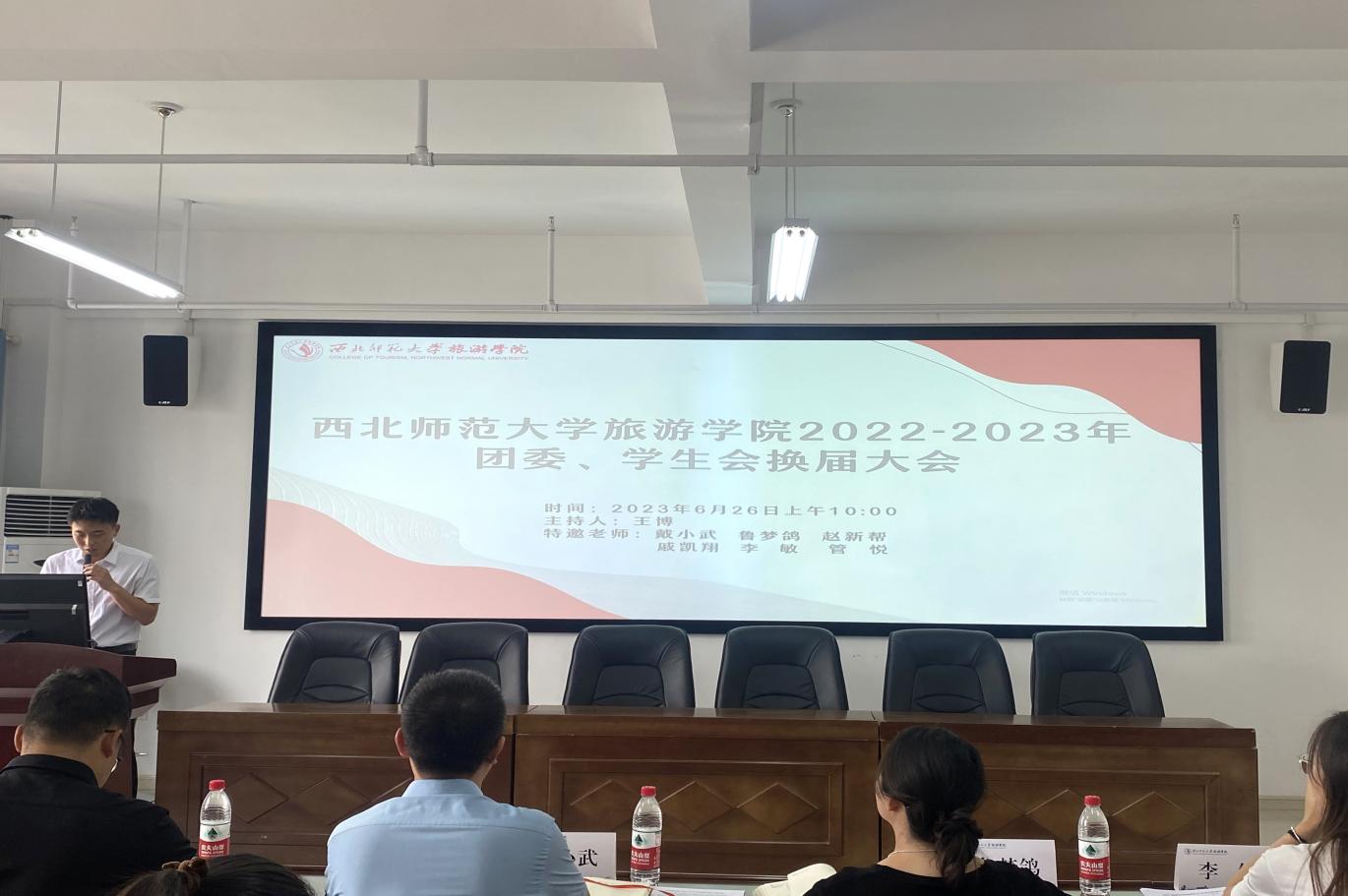 6月26日,437必赢会员中心团委学生会换届选举会议暨表彰大会在云衢楼904顺利召开。旅游学院党委副书记戴小武、团委书记鲁梦鸽、专职辅导员赵新帮、李敏、戚凯翔、管悦等人出席会议,80余名学生骨干代表参加活动。会议由2022届团委学生会主席王博主持。