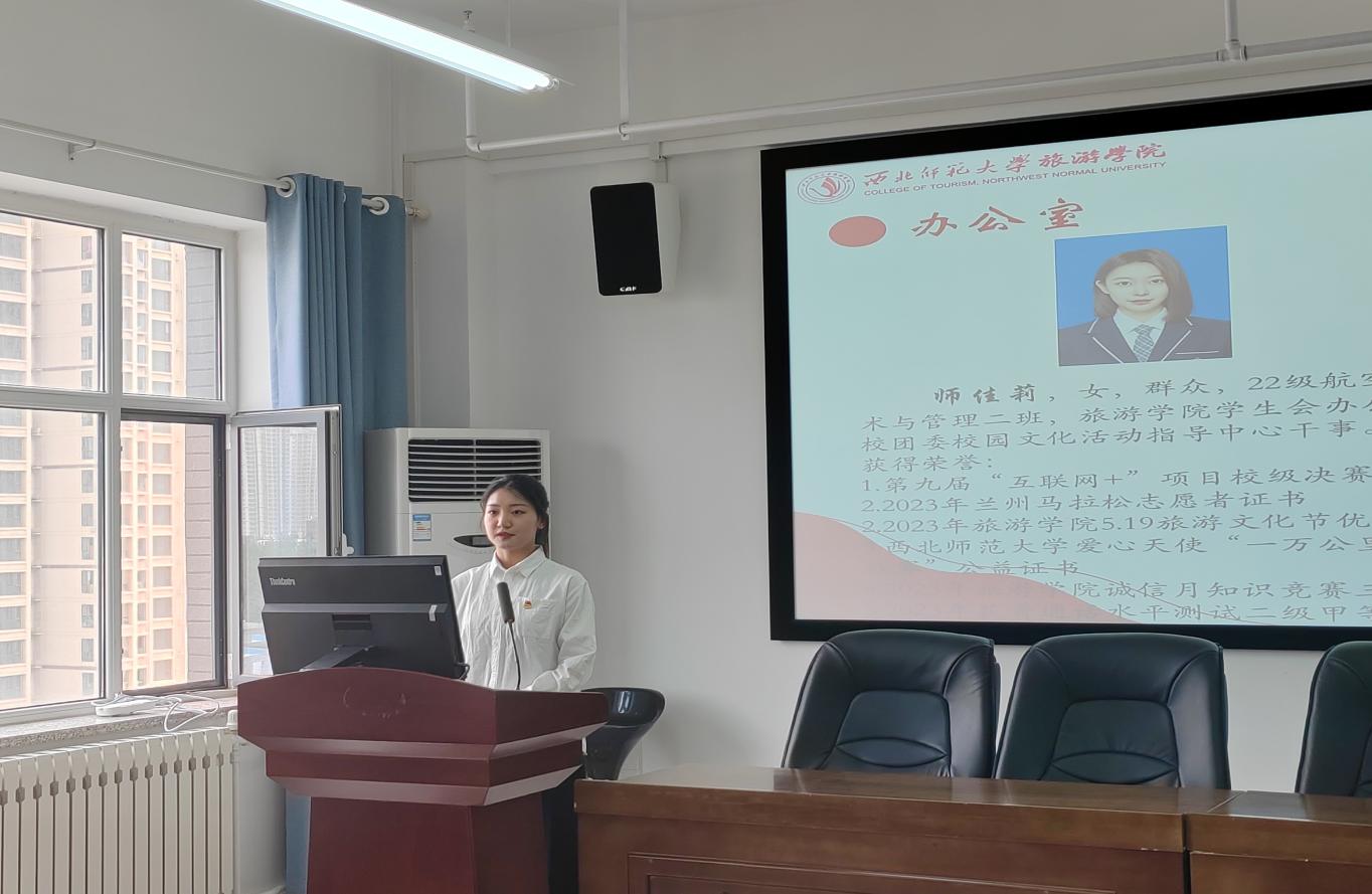 致辞环节,党委副书记戴小武为437必赢会员中心团学组织发展的欣欣向荣而感到由衷的欣慰,围绕“责任,学习,服务,团结”四个关键词,阐明了学生会工作的重要意义,并对新一届学生会工作寄予厚望,希望新一届学生会以更加负责的态度、更加务实的作风,踔厉奋发、打造旅院各类精品活动,更好的团结同学,服务同学生活学习。团委书记鲁梦鸽回忆自己在工作中,她与团学骨干们并肩前行,充分感受到团学骨干们为学院服务的真心。最后,她表达了对437必赢会员中心团委学生会的深厚情感与殷切希望。