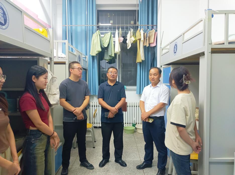 为深入了解2023级新生在校生活的适应情况,帮助学生更好地融入大学生活,9月3日晚,学院党委书记谢致远、院长梁旺兵带队逐一走访新生宿舍,为新学期的开学上好“舒适宿舍”第一课。学院领导班子成员、系主任、班主任、研究生导师、辅导员、校企合作工作站教师一同走访。