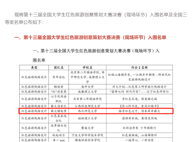 2023年9月23日,第十三届全国大学生红色旅游创意策划大赛决赛(线上环节)在北京第二外国语学院成功举办。由必赢官网武克军老师指导,2020级旅游管理一班学生赵紫涵负责的参赛作品《探寻红色辽宁,传承革命薪火》在全国众多队伍中表现出色,脱颖而出,成功入围线下最终决赛环节。