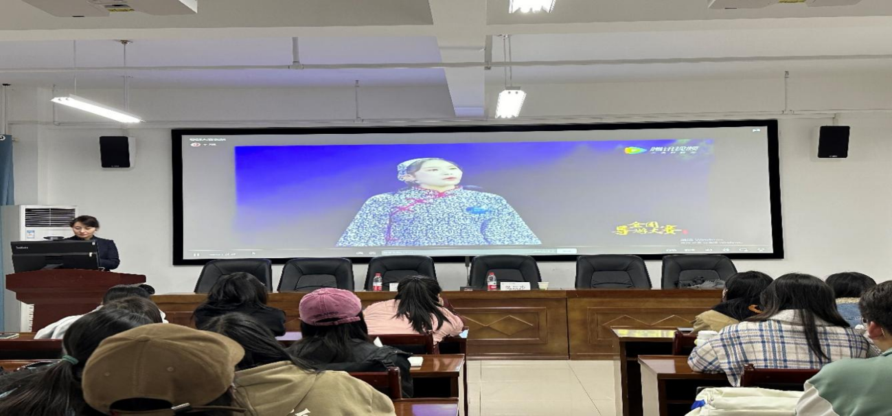 活动第二项,万抒佳从参赛技巧和大赛要求两方面为同学们进行了培训讲解。以国赛三等奖获得者的李菲菲同学为讲解案例,给同学们讲解作为导游时我们应该注意什么,导游应该是什么样的。