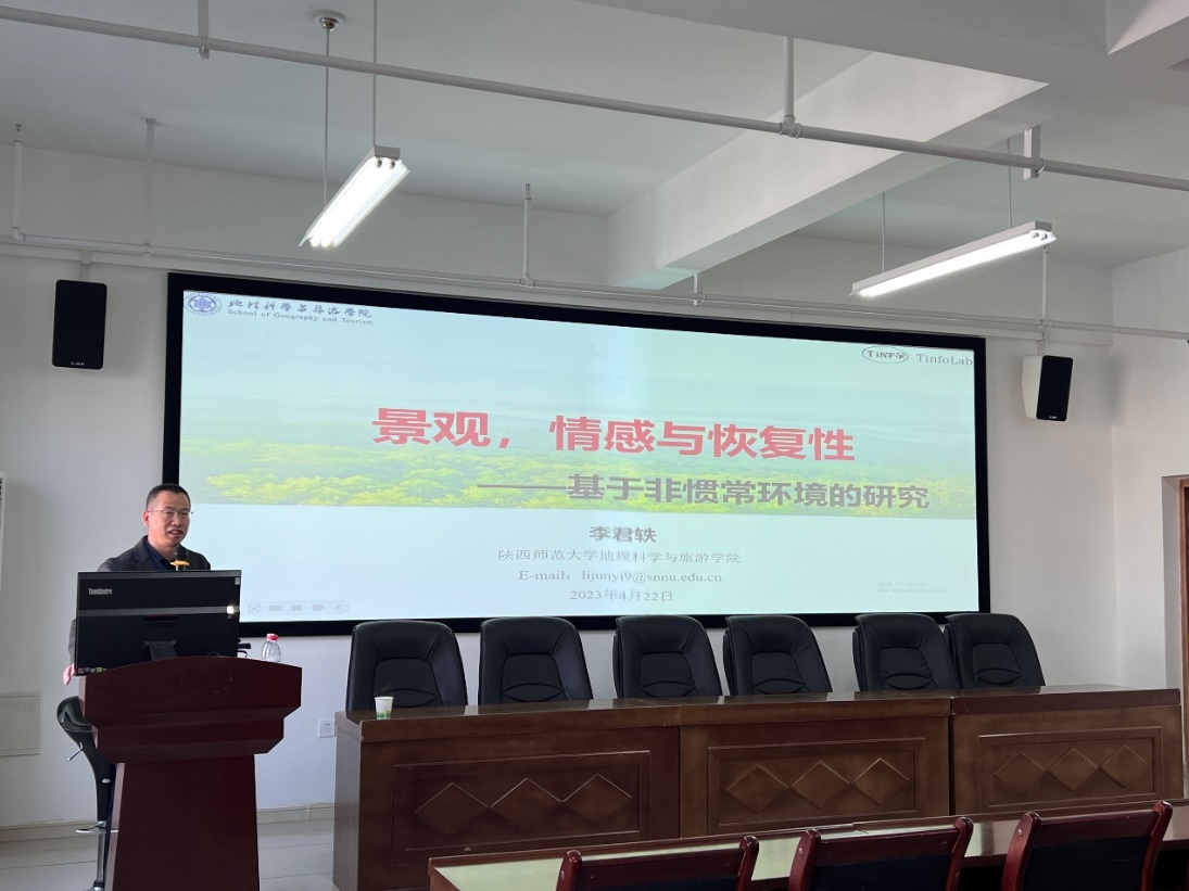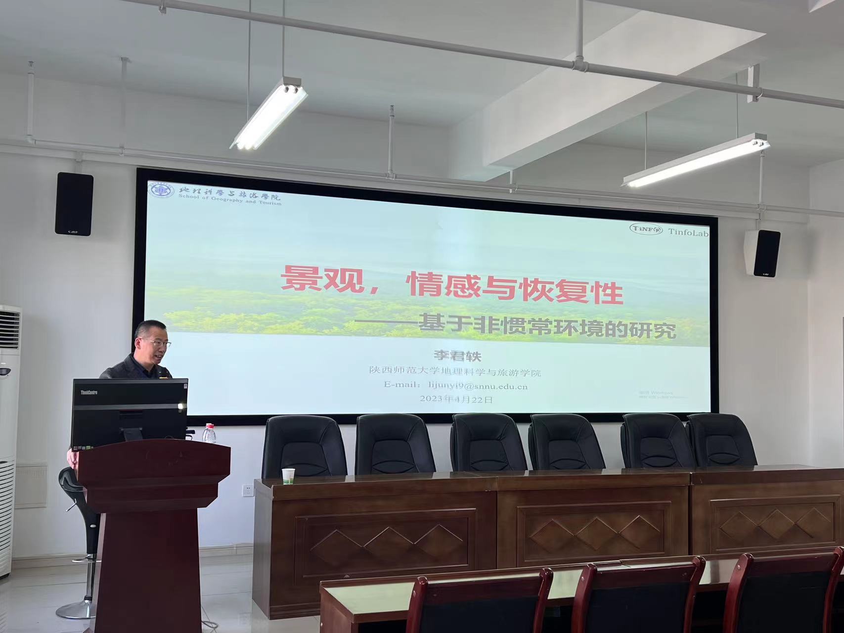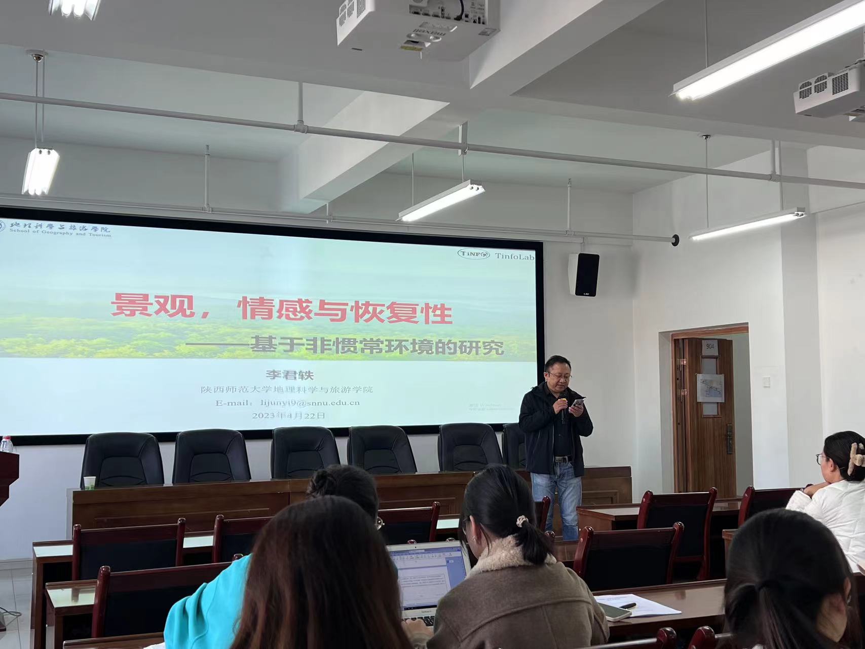 11月9日下午,应437必赢会员中心邀请,陕西师范大学地理科学与437必赢会员中心院长李君轶教授来必赢官网做题为“景观、情感与恢复性—基于非惯常环境的研究”学术报告,报告会在文科实训楼904会议室举办。此次报告由学院副院长柴亚林主持,相关专业老师、研究生和本科生100余人参加了报告会。