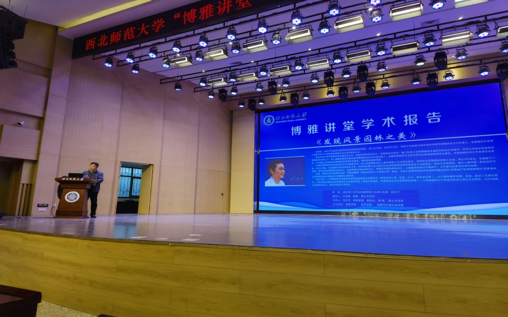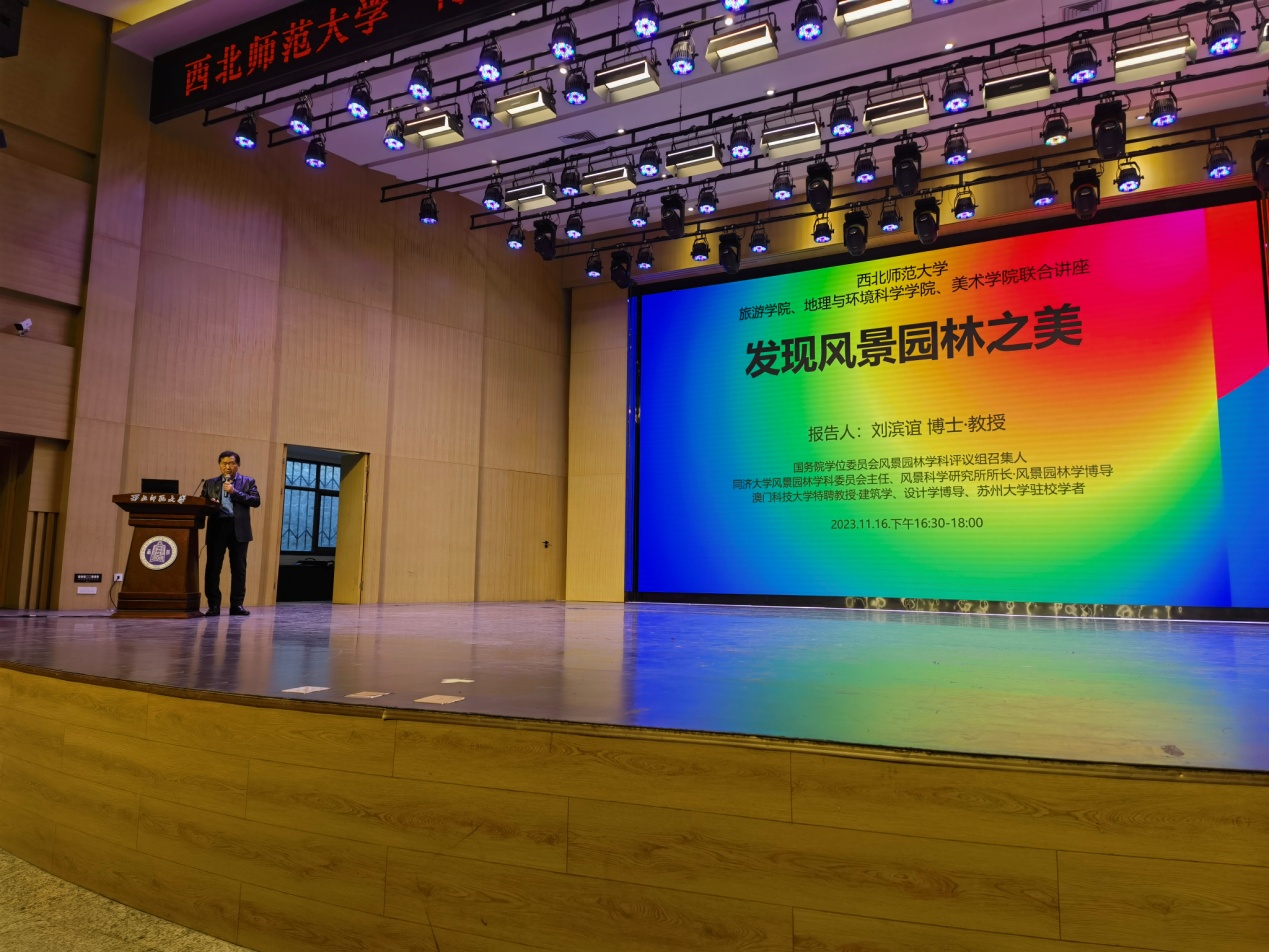 11月16日下午,受437必赢会员中心邀请,同济大学建筑与城市规划学院景观系教授、博士生导师刘滨谊教授为我校437必赢会员中心、地理与环境科学学院、美术学院300余名师生作了题为“发现景观园林之美”的学术报告会,本次报告会由副校长李文生教授主持。