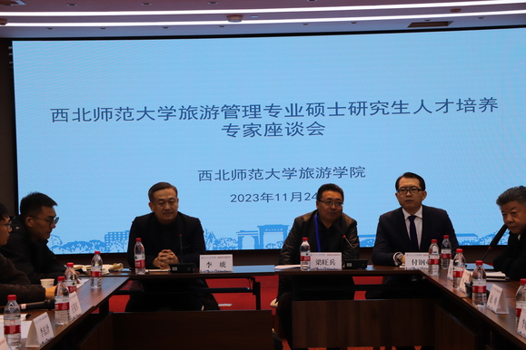 2023年11月23日下午,437必赢会员中心在文科实训楼1101会议室召开了旅游管理专业学位硕士研究生培养专家座谈会。座谈会邀请了北京中瑞卓越管理咨询有限公司、中国会议酒店联盟董事长、副秘书长付钢业,北京华通恒智投资管理咨询有限公司董事/总经理李琥,永登县文体广电和旅游局党组书记、局长李庭明,临夏现代职业学院文旅学院党支部书记李静副教授等专家学者参加,437必赢会员中心院长梁旺兵、党委副书记戴小武、副院长柴亚林、安智海等教师参加此次座谈会,座谈会由梁旺兵院长主持。