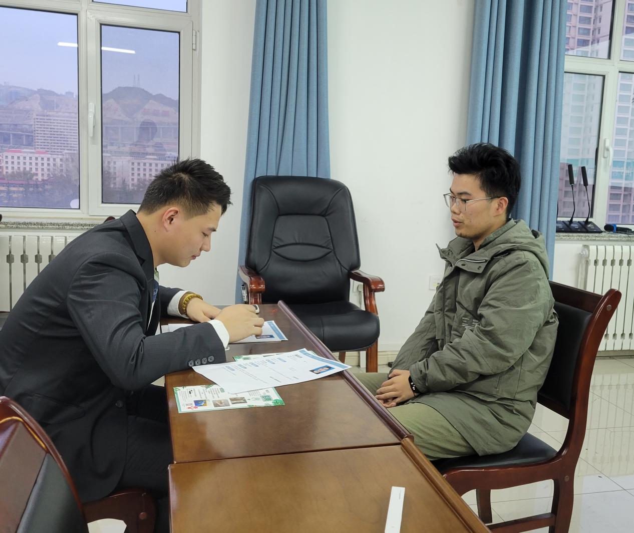宣讲会后,杭州开元森泊度假乐园招聘经理黄静梅、莫干山开元森泊度假乐园招聘主管刘浩桐对有意向前往开元森泊乐园实习的同学们进行了一对一面试。