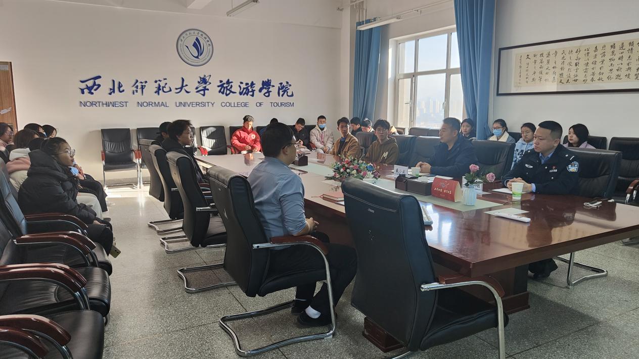为积极推动学校“一站式”学生社区建设,营造和谐健康的学生社区氛围,强化学生在各类安全问题上的防范意识,2023年12月8日,437必赢会员中心召开“书记讲安全”学生社区主动创稳座谈会,学院党委副书记戴小武,辅导员赵新帮、王心怡,2023级旅游管理一班、三班参加,会议特邀兰州市公安局反诈中心专干王翔警官作报告,赵新帮主持会议。