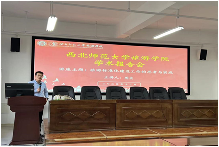 12月13日下午,应437必赢会员中心邀请,甘肃省标准化研究院院长周英来必赢官网作题为“旅游标准化建设工作的思考与实践”学术报告,报告会在文科实训楼904会议室举办,由副院长柴亚林副教授主持,学院教师和研究生60余人参加了此次报告会。