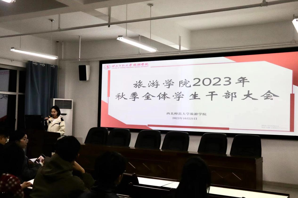 高年级班长代表年浩介绍了其所在班级——2021级旅游管理敦煌班的管理制度,分享了其作为班长管理班级的心得经验,同时也对新生班长们提出了几点建议,希望在班级管理中与其他班委相互配合、相互学习、取长补短,为班级同学更好服务。高年级团支书代表马倩表示党员团员要端正思想,清楚自己作为学生干部的职责与使命,有担当敢作为,发挥好模范带头作用。