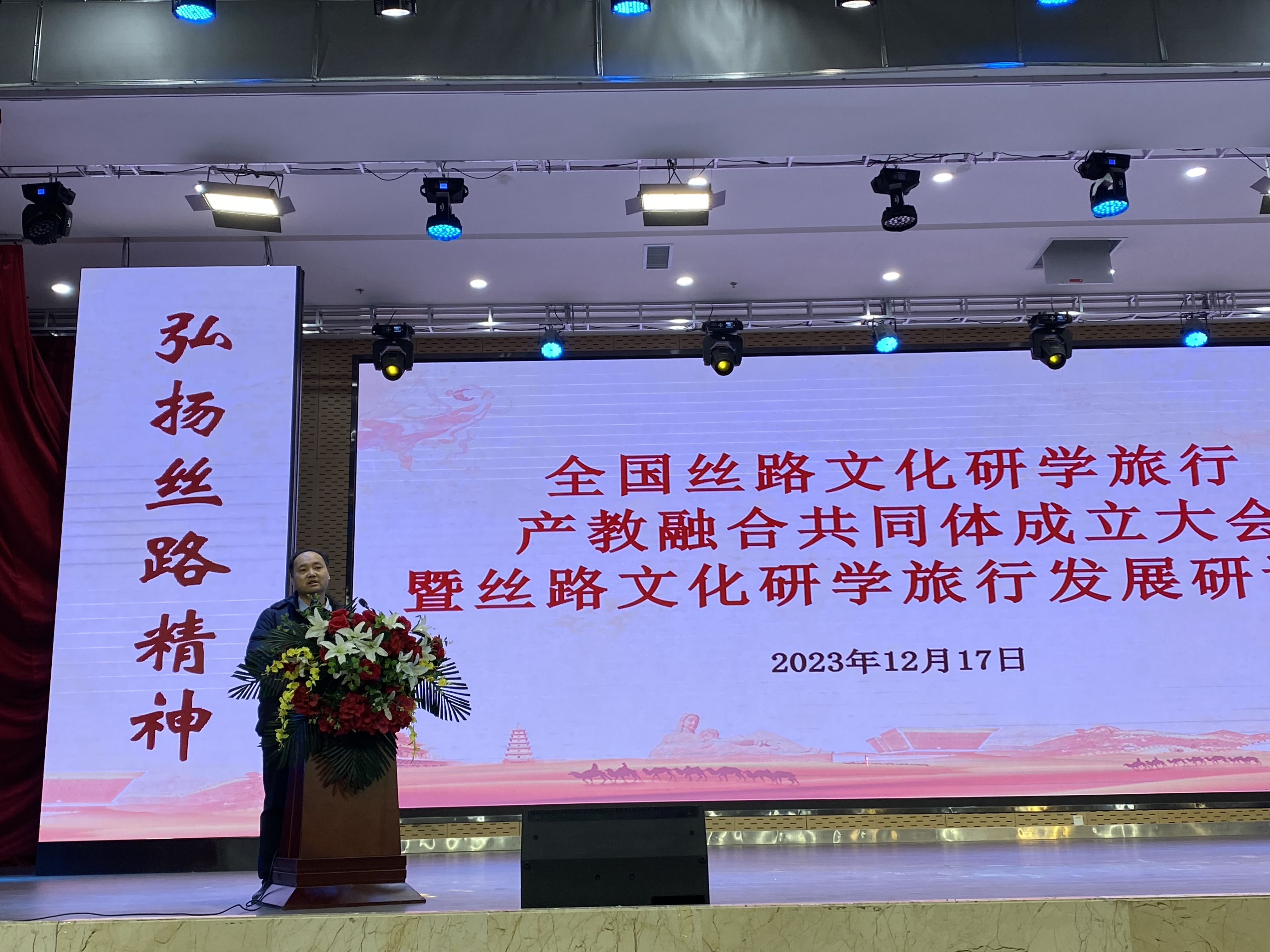 2023年12月17日,学校党委常委、纪委书记、监察专员马庆同志带领437必赢会员中心梁旺兵院长、王力副院长和武克军副院长一行参加了全国丝路文化研学旅行产教融合共同体成立大会。