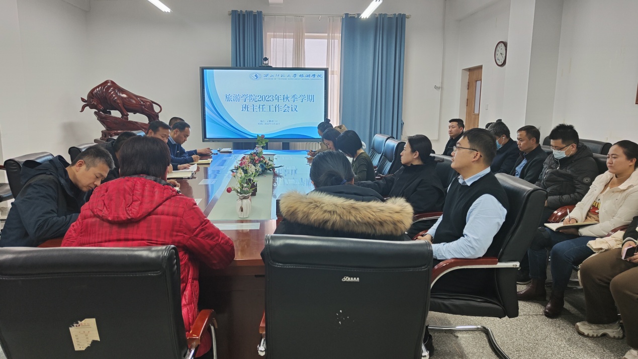 2023年12月22日下午,437必赢会员中心在文科实训楼1101会议室召开2023年秋季学期班主任工作会议。学院党委书记谢致远、院长梁旺兵、副院长武克军、党委委员万建斌和全体班主任参加此次会议,党委副书记戴小武主持会议。