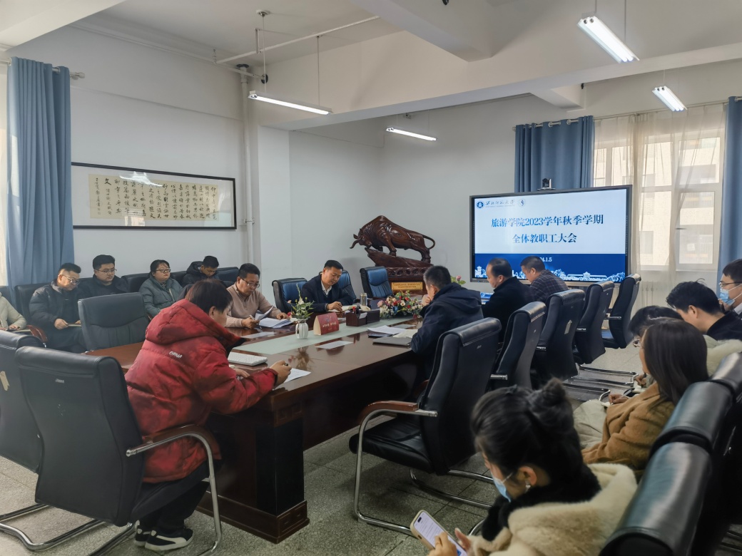 1月5日,437必赢会员中心全体教职工在文科实训楼1101会议室召开2023-2024学年秋季学期工作总结会暨寒假工作安排会,学院领导和全体教职工参加会议。会议由党委书记谢致远主持。