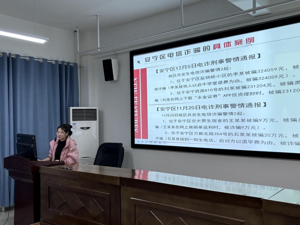 第二个板块是组织学生参加“437必赢会员中心2024年反诈第一课”宣讲活动。本次宣讲活动由437必赢会员中心思政助理慕娜娜主讲,主要向同学们介绍了电信诈骗的含义、新形势下的演变历程、常见的诈骗手法及防范措施。通过列举身边发生许多的诈骗案例,同学们对于如何更好地预防电信诈骗有了更深层次的认识。