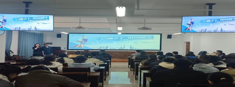 宣讲会现场,人力资源部门负责人向在场的同学们详细介绍中国南方航空公司的概况、发展前景、招聘要求和面试流程、业务范畴、员工培养、福利待遇等内容。同时,就同学们提出的问题进行解答。