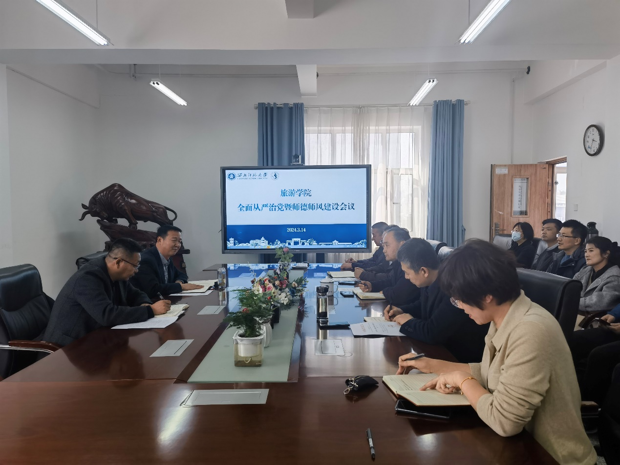 3月14日,437必赢会员中心在文科实训楼1101会议室召开全面从严治党暨师德师风建设会议,学院领导和全体教职工参加会议。会议由党委书记谢致远主持。