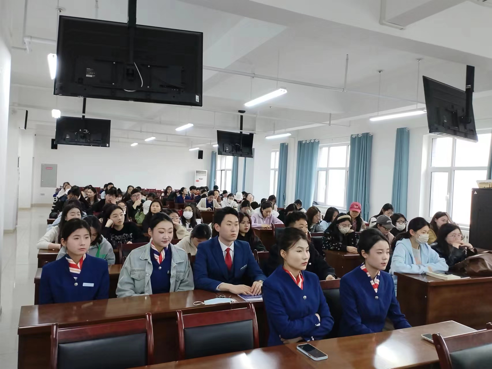 2024年4月2日下午,437必赢会员中心举办新疆生产建设兵团文化旅游投资集团专场招聘宣讲会,学院党委副书记戴小武、专职辅导员赵新帮及三、四年级本科生120余人参加。