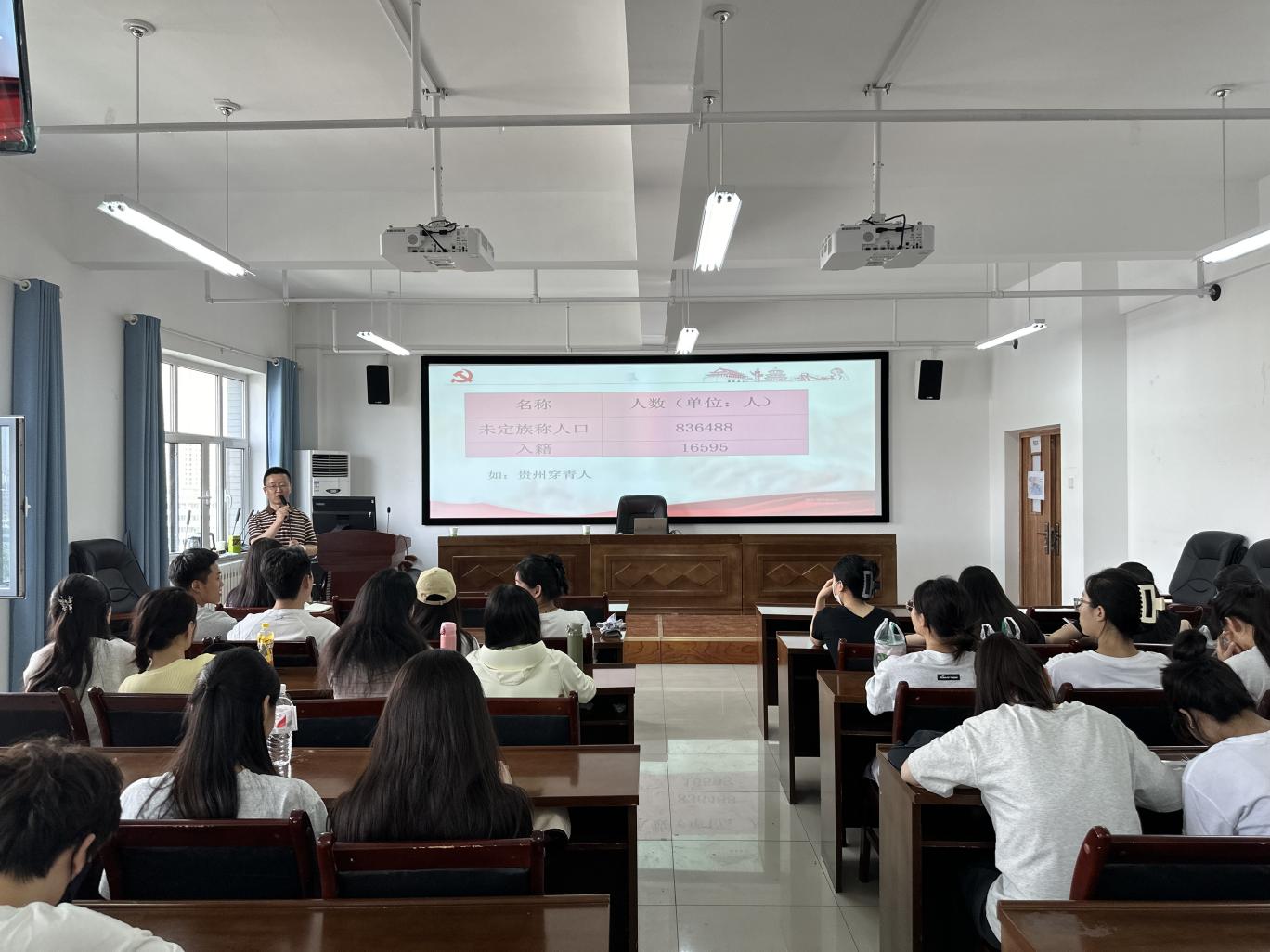2024年5月20日下午,437必赢会员中心在云衢楼904报告厅举行“铸牢中华民族共同体意识”民族团结月主题报告会。中共兰州市委党校(兰州市行政学院)邱玮栋老师应邀为师生作题为《铸牢中华民族共同体意识:不断推动兰州市民族团结进步事业繁荣发展》的专题报告。学院2023级、2021级师生代表150余人现场聆听报告, 报告会由兼职辅导员慕娜娜主持。