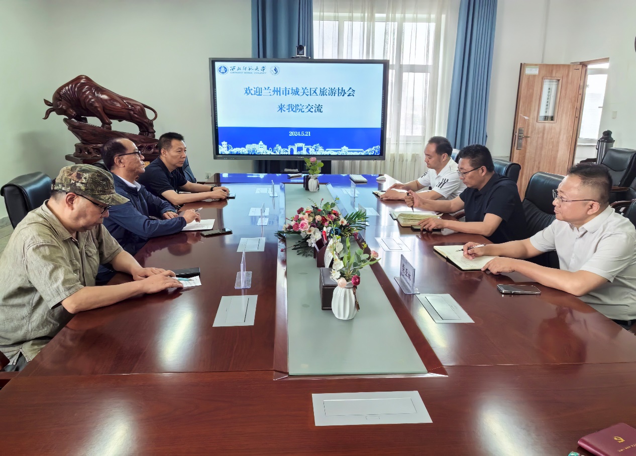 2024年5月21日下午,兰州市城关区文化旅游发展行业协会会长魏学强、副会长卢刚、副会长陆鹏等一行莅临学院,座谈交流合作事宜。会议由院长梁旺兵主持,副院长柴亚林、武克军以及办公室主任相关人员参加座谈。