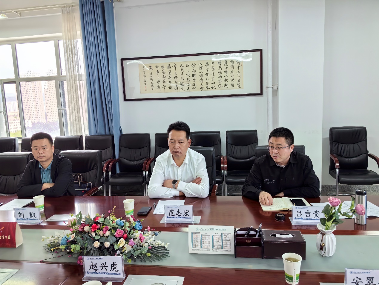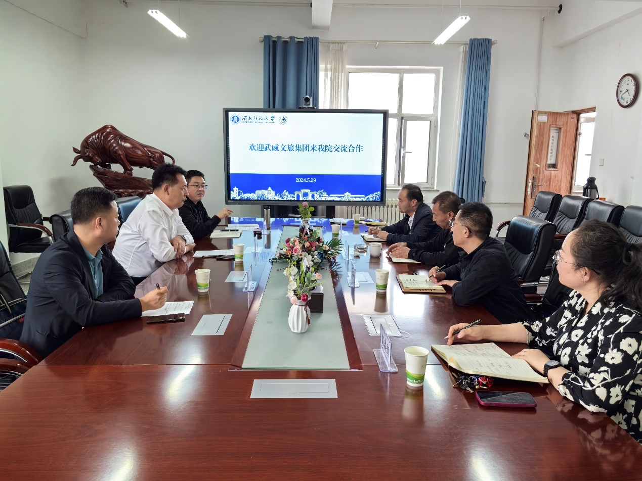 2024年5月29日下午,武威文旅集团董事长范志宏、总经理吕吉贵、副总经理刘凯一行三人来437必赢会员中心调研交流。437必赢会员中心党委书记赵兴虎、副院长武克军、办公室主任安翠香等相关人员参加座谈,座谈会由学院党委书记赵兴虎主持。