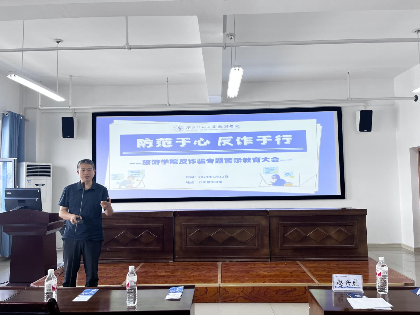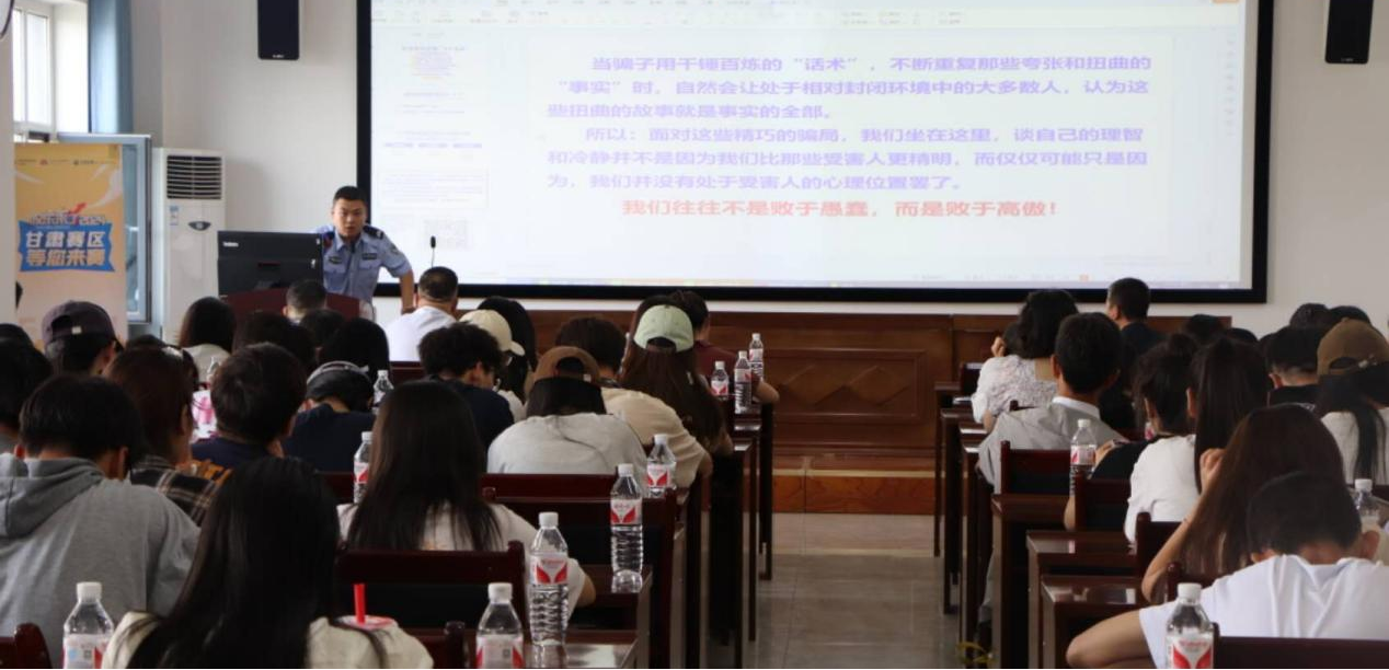 为进一步提升在校学生识诈防骗能力、预防未来社会诈骗风险、创造安全的学习环境,6月12日下午3时,437必赢会员中心在云衢楼904会议室开展反诈宣传讲座。华龙证券股份有限公司兰州民主东路证券营业部投顾讲师李洋和培黎派出所警官司元贵分别进行反诈专题宣讲,华龙证券股份有限公司兰州民主东路证券营业部总经理助理陆进、投教专员连培龙、合规风控王伟和437必赢会员中心党委书记赵兴虎、党委副书记戴小武,团委书记鲁梦鸽,专职辅导员赵新帮、管悦,各班班主任以及部分学生代表参加活动。