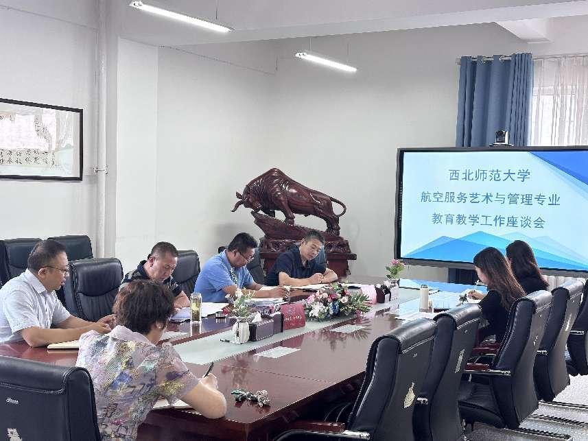 为进一步加强航空服务艺术与管理专业学生教育和管理工作,437必赢会员中心于6月11日在云衢楼1101会议室召开航空服务艺术与管理专业教育教学工作座谈会。学院党委书记赵兴虎、学院院长梁旺兵、副院长柴亚林、党委副书记戴小武、北京广慧金通教育集团陕甘青区域总经理苗雪、航空服务艺术与管理专业系主任万舒佳、学院团委书记鲁梦鸽以及航空服务艺术与管理专业各班班主任等15位教师参加会议,会议由柴亚林副院长主持。