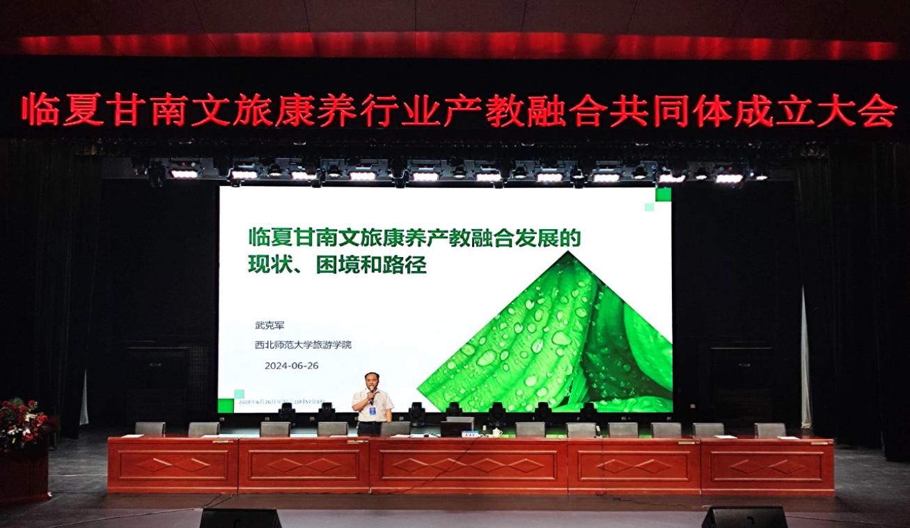 授牌仪式结束后,437必赢会员中心副院长武克军副教授作了题为《临夏甘南文旅康养产教融合发展的现状、困境和路径》主旨报告。