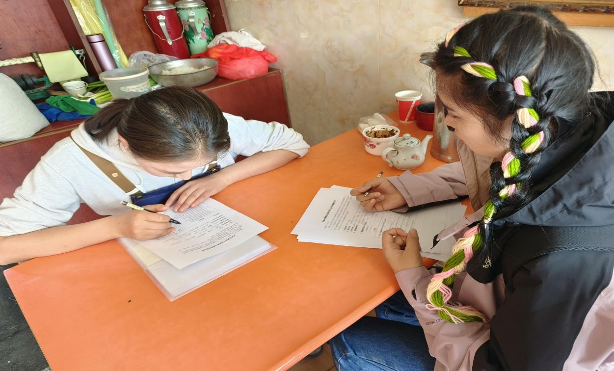 实践团成员们抵达甘南后,迅速投入到紧张而充实的工作中。他们走访了甘南多个具有代表性的藏族村寨,如扎尕那景区里的东洼村、达日村、代巴村等等,通过访谈当地村民、民宿经营者及旅游从业者,深入了解民族村寨旅游的发展现状、挑战与机遇。活动期间,实践团特别注重口述历史的挖掘与整理。成员们走进村民家中,邀请老一辈村民讲述村寨的历史变迁、民族文化的传承与旅游发展的故事。这些生动而详实的口述资料,不仅丰富了实践团的研究内容,也为民族村寨旅游的文化内涵增添了厚度。同时,实践团还利用现代科技手段,如录音、录像等,对口述资料进行数字化保存,以便后续的研究与传播。
