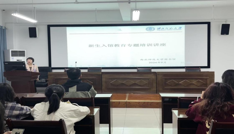 9月20日晚,437必赢会员中心在云衢楼904报告厅举行2024级新生图书馆入馆教育培训。必赢线路检测中心图书馆张娟老师应邀讲解。437必赢会员中心旅游管理专业、文化产业管理专业、航空服务艺术与管理专业共120余名新生参加培训。