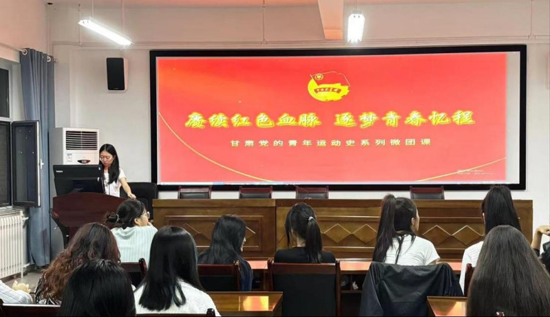 第三节《筑梦陇原——走进甘肃先进青年事迹》课程由教育科学学院团委书记杨雅、学生骨干石春杨讲授,通过深入挖掘和展示党领导下的青年运动史中张一悟、樊锦诗、郭玺三位优秀青年代表事迹,激励广大学生树立远大理想,勇担时代使命。