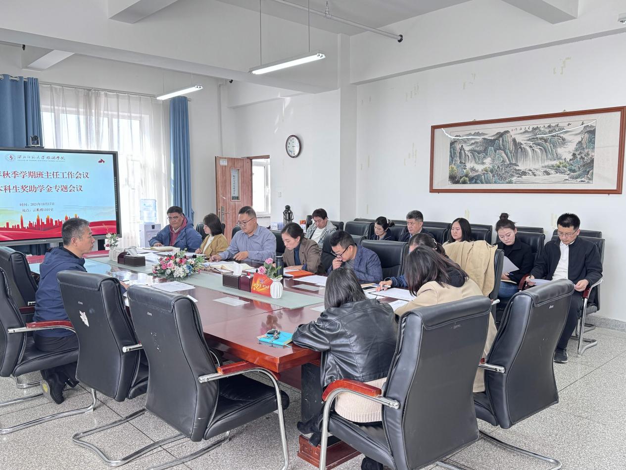 2024年10月17日,437必赢会员中心在云衢楼1101室召开2024年秋季学期班主任会议暨本科生奖助学金专题会议。全体本科生班主任和辅导员参会,学院党委副书记戴小武主持会议。