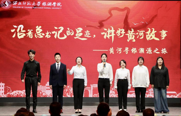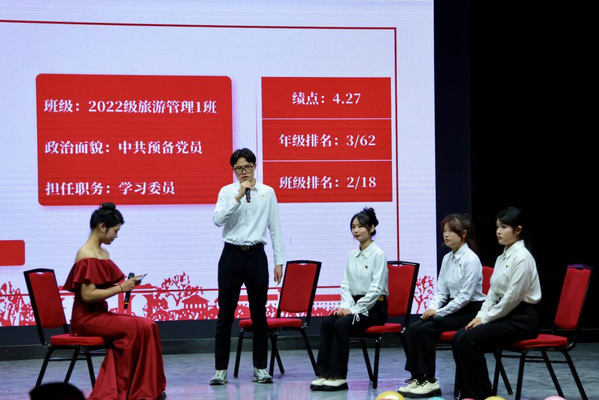 第一篇章:旅游管理专业导引展示。《沿着总书记的足迹,讲好黄河文化故事——黄河寻根溯源之旅》、优秀校友刘复兴职业经历分享、国家奖学金获得者现场分享、舞蹈《美丽中国》、服装走秀《霓虹时光秀》以及话剧《优秀校友陈红军》,同学们结合自身所学专业展示自我,让现场学生深刻感受到旅游专业绽放的生命色彩。