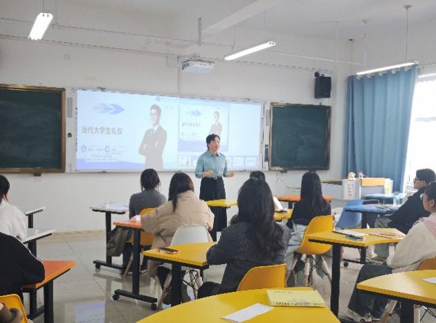 2025年3月6日下午,学院邀请窦雅丽老师为2022级旅游管理一班的全体同学举办了一场以“当代大学生礼仪”为主题的专题讲座。此次活动旨在提升学生们的礼仪素养,帮助他们在校园生活及未来职业生涯中展现更佳的个人形象和综合素质。